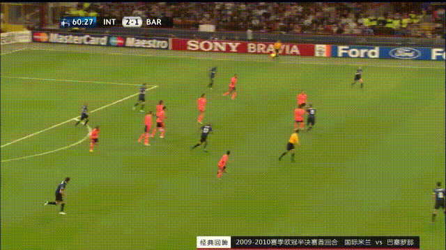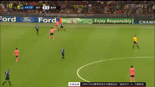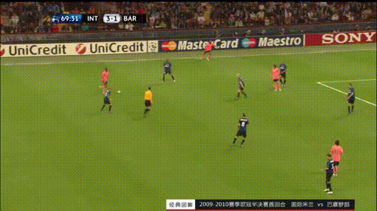 但这一次,角色有了交换,打反击的球队是巴塞罗那,而进行反抢与二次反击的球队则是国际米兰。巴塞罗那队刚刚断球想要带球发动反击,在球员还犹豫的同时,国际米兰的中场球员立刻用一个滑铲将球拦截下来,随后国际米兰队快速采用“边路传中,中路头球攻门”的战术套路,待巴塞罗那队后防线还没有完全落稳之际,国际米兰就对对手的大门完成了轰炸,并最终取得了进球。
