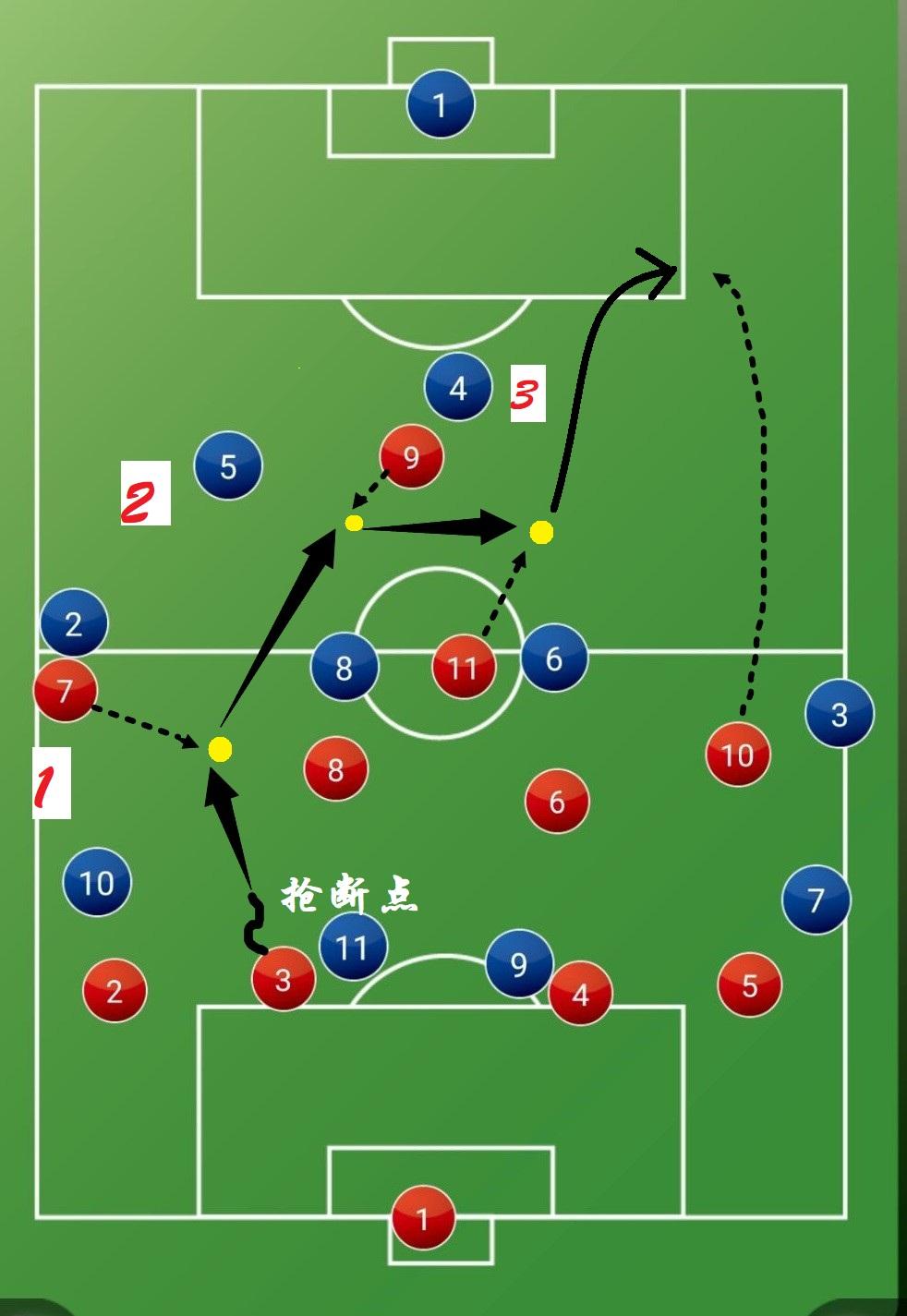 如上动图所示,这是一次非常经典的利用对方反击失误通过二次反击取得破门的案例 。