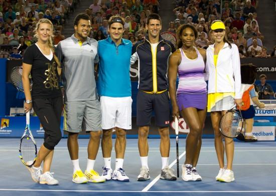 为了验证阿扎伦卡的身高,小编找了她和1.78米的小威,以及和1.87米的费德勒、1.88米的特松加等人的合影,他们的身高差距显示,阿扎伦卡的1.83米是没有问题的。