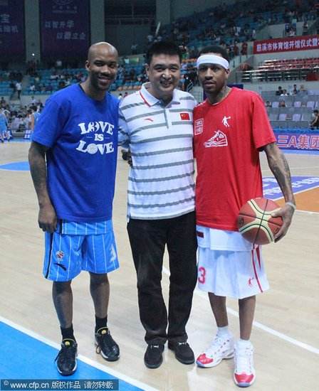 阿伦·艾弗森在世界篮球界有超高的人气,在中国更是红得发紫,不过,这位小个子球星在中国的身高却被一再“压缩”,从资料里的1.83米变成1.80米,后来又有人称他只有1.78米,总之,现在艾弗森1.78米的说法基本已经成了共识,理由不外乎“我见过真人,没比我高,我还不到180。”或者“他和我同学有合影,比我同学还矮”之类。NBA虽然虚报身高成风,但一下子谎报5厘米的还真不多,尤其像艾弗森这种本来就矮的球员,再虚报这么多外人一眼就能看出来,似乎没有必要。为了核实艾弗森的真实身高,小编找了几个身高在1.83米左右的“模特”,和艾弗森进行一下正面PK。