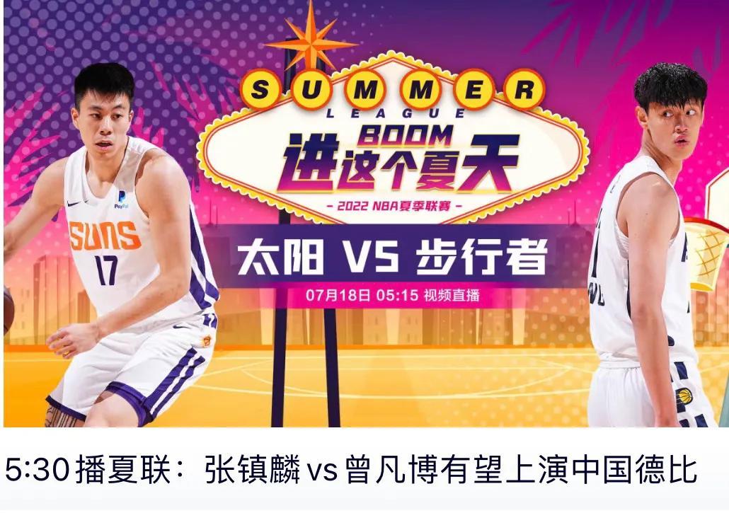 明天早上5点30点 NBA夏季联赛 太阳vs步行者中国德比再次上演!张镇麟pk 曾凡博