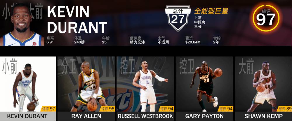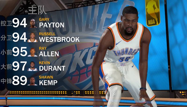 直播吧10月9日讯 今天距NBA常规赛揭幕战还有8天!小编带领各位吧友了解一下2K19中的雷霆队最佳十五人阵容!