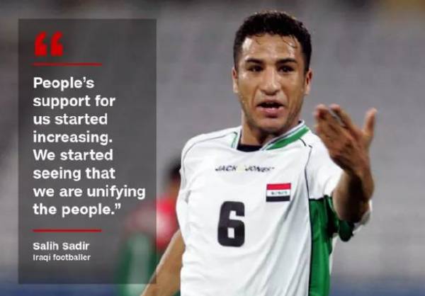 幸运的是,伊拉克人最终还是团结了起来。因为足球,让所有的宗教种族抛弃了彼此之间的成见,站在了同一块场地里,为球队呐喊欢呼。球员们认识到自己肩负的使命,在球场上决心为了祖国的重新凝聚去战斗。