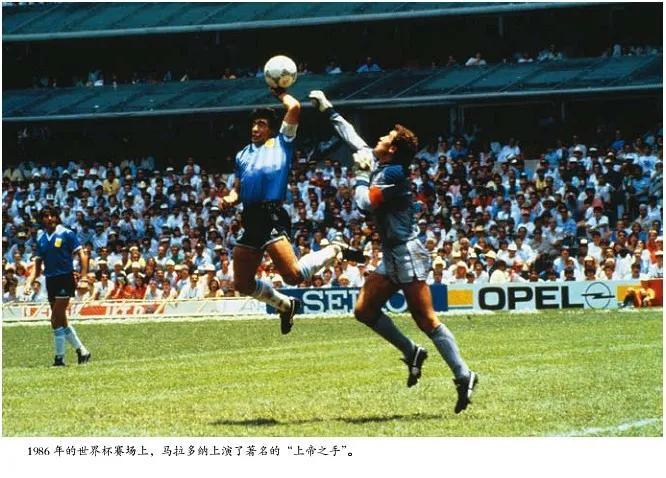1986年6月22日,在墨西哥世界杯1/4决赛阿根廷对阵英格兰的比赛上,迭戈·马拉多纳用手把球攻入了英格兰队的球门,并且裁判判定进球有效,这就是著名的“上帝之手”事件。后来把在足球比赛中用手将球打进,且被裁判误判有效的情况称为“上帝之手”。