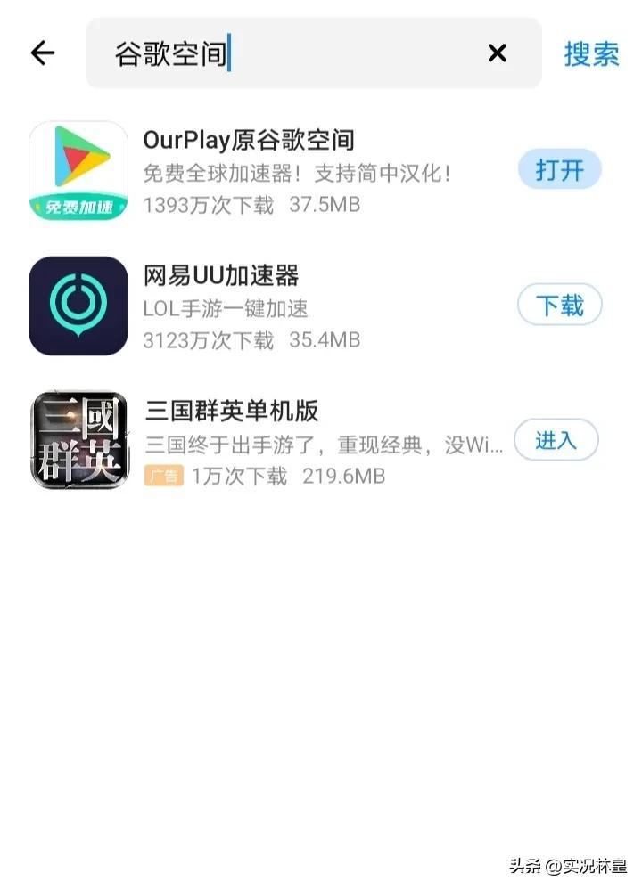 第二步:打开《应用宝》,搜索《酷酷跑》与《谷歌空间》,全部下载到手机上。