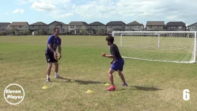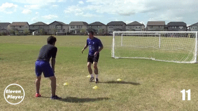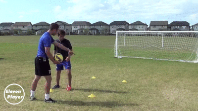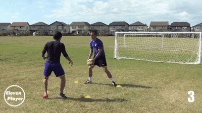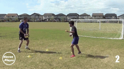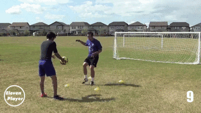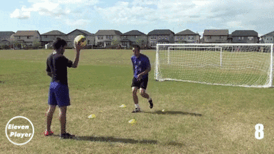 在两点之间左右移动并使用头部将球顶回给队友。