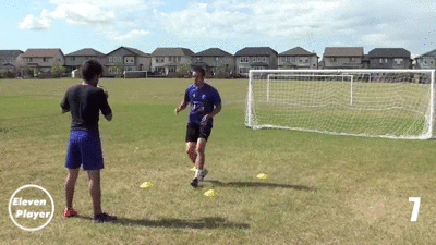 再依次使用左右脚的脚内侧将球传回给队友。