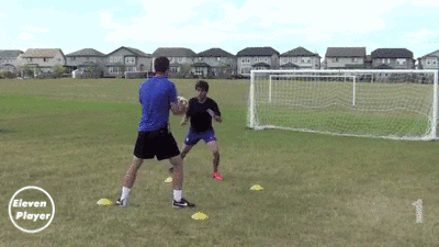 在一个矩形方框内前后移动先使用胸部将球速卸下。
