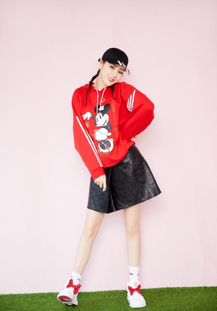 最近因为新剧《三生三世枕上书》不断上热搜的迪丽热巴就是少女风穿搭的爱好者,红色卫衣显气色又十分活泼,搭配黑色的A字皮短裙超级显瘦,露出又白又细的长腿好看极了。