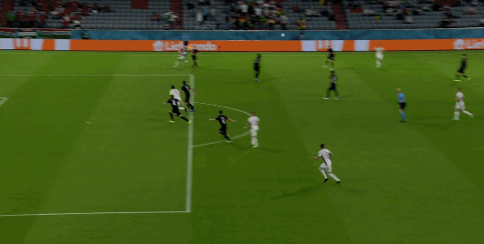 北京时间2021年6月24日3时,欧洲杯F组第3轮,德国对阵匈牙利。第11分钟,罗兰·绍洛伊助攻队友亚当·绍洛伊为匈牙利首开记录。上半场结束,匈牙利暂时以1-0领先。易边再战,随后哈维兹接队友传球破门得分,为德国扳平比分。第68分钟,舍弗为匈牙利攻入一球,助球队2-1领先。比赛第84分钟,戈雷茨卡攻入一球,德国绝平比赛。终场哨响,德国与匈牙利握手言和,比分定格为2-2。