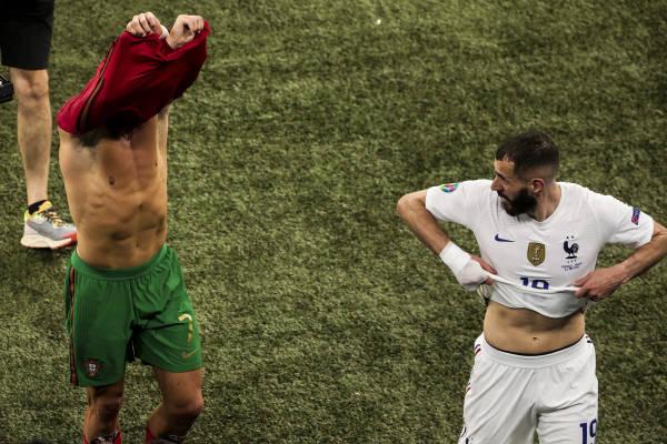 F组另一场比赛,由葡萄牙对阵法国。本场比赛也充满了戏剧性,4粒进球中有3粒点球。C罗、本泽马分别为球队打入两球。
