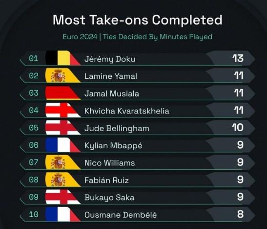 要知道,亚马尔可是截至目前,欧洲杯赛的第二过人王,这样的成就,实在是太出色。16岁的他,在西班牙国家队出战11场,打入2球送出5次助攻的,这样的故事开篇,确实太美。