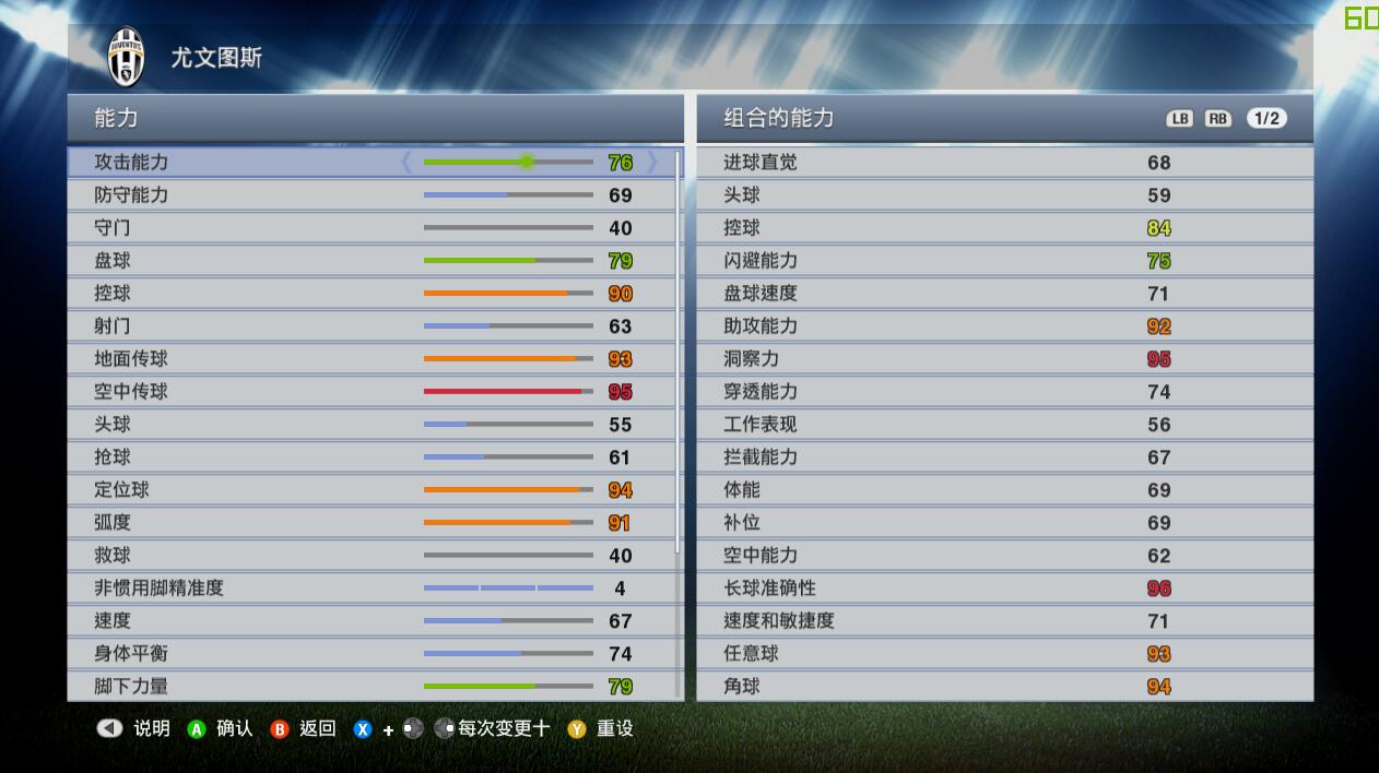 11到12赛季,加盟尤文图斯的皮尔洛随队夺得个人的第三次联赛冠军,并在当年的欧洲杯中帮助意大利队夺得亚军。33岁的皮神依旧表现出色,游戏中的长传精度甚至到了98点。