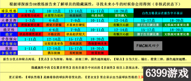 更正说明:原图中第一项【更衣室】对应的是【职业素养】,原因是我的球队性格为非常专业,该性格主属性为职业素养,在报告中也会指出这个主属性,然后根据报告对象的该属性取值来对应下方表格数值给出相应的说法。