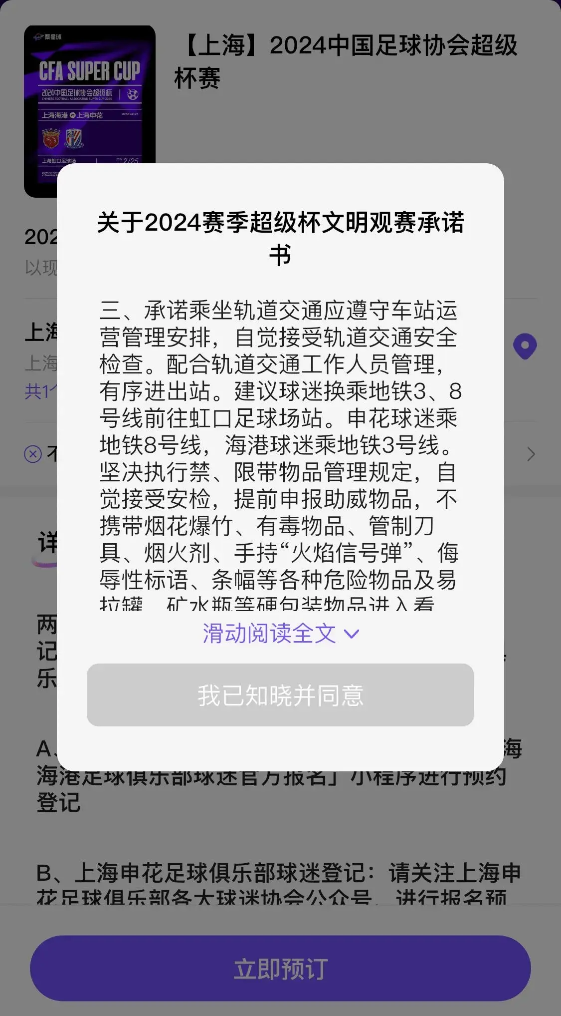 售票网站发布的 《关于2024赛季超级杯文明观赛承诺书》提到,建议两队球迷不要乘坐同一班地铁前往虹口足球场——建议申花球迷乘坐地铁8号线,海港球迷乘坐地铁3号线。如此强调红蓝球迷的物理间隔,显然是有关安全保障方面超级重视赛事的安全举办,从行政管理层面力争把两队球迷产生冲突的可能性降至最低。