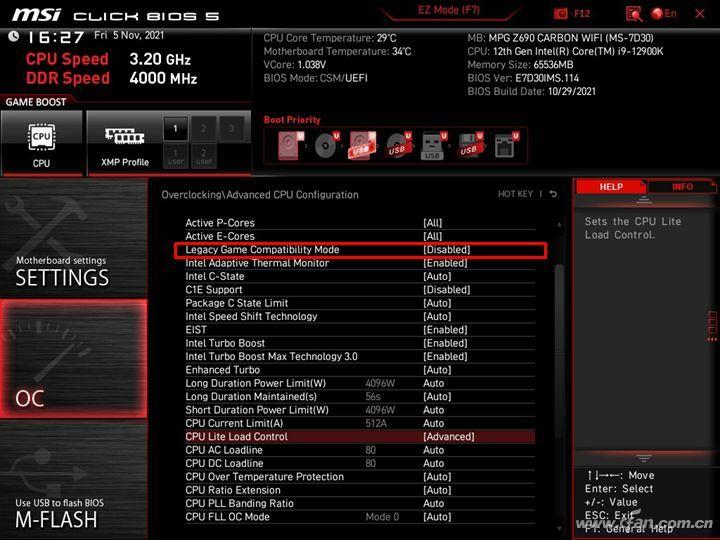要搞定这些游戏,我们需要先确认Z690主板使用的是最新版本BIOS,然后进入BIOS,开启其中新增的Legacy Game Compatibility Mode(老游戏兼容模式),保存并退出。在启动游戏之前先按下键盘的Scroll Lock(滚动锁定按键)激活该功能,之后启动这些受到影响的游戏,进入游戏后再关闭Scroll Lock键。