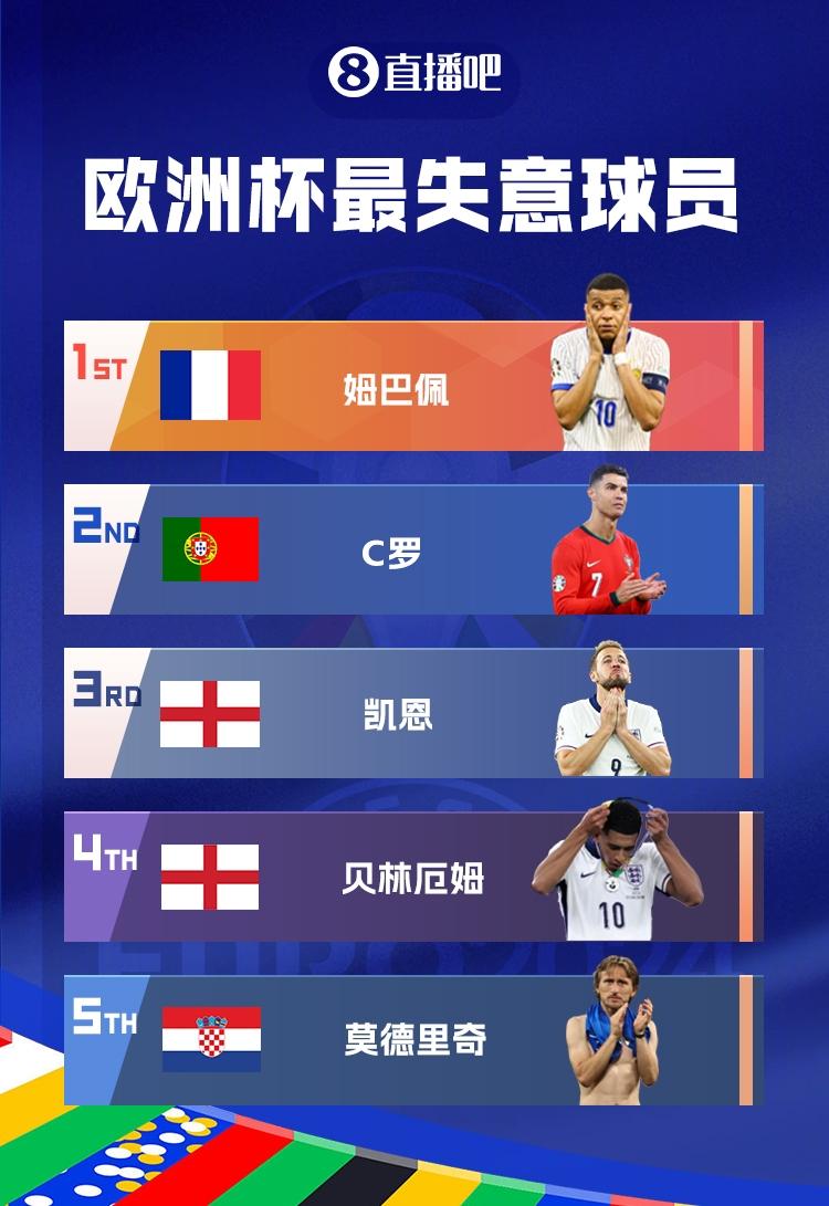 直播吧2024欧洲杯最佳阵容(433阵型)