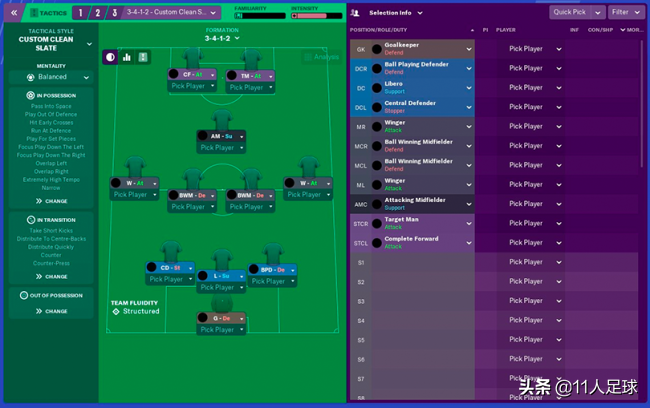 在FM中,我们通常只有在对方中路进攻过于强势的情况下才会采用4-1-2-1-2,迫使他们攻势向边路转移。但齐祖采用此套战术的原因在于那时的银河战舰正值鼎盛时期,不仅中场人才济济,锋线也坐拥C罗与本泽马两员大将。