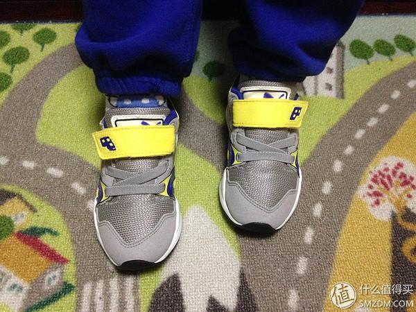 鞋子晒完了,有请儿子出场试穿。