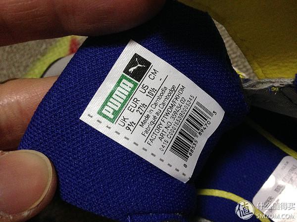 盒子侧面是尺码信息,但puma没写厘米数。