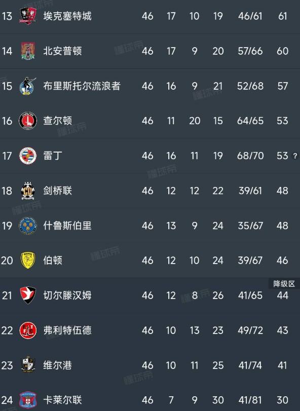 而在降级区方面,切尔滕汉姆1-2不敌斯蒂夫尼奇之后随弗利特伍德、维尔港和卡莱尔联一同降级至英乙联赛。