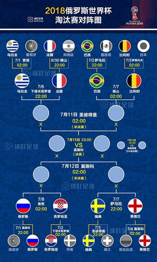 今天,我们来聊一聊世界杯。俄罗斯世界杯八强尘埃落定,巴西、乌拉圭、法国、比利时、瑞典、英格兰、克罗地亚以及东道主俄罗斯,八支球队中将诞生新王。虽然八强实力有别,但在容错率极低的淘汰赛中,没有哪支球队完美无缺、有百分之百的把握晋级。即将到来的1/4决赛比的就是谁能抓住对手弱点,祭出致命一击。这个周末,我们共同见证四强的诞生。