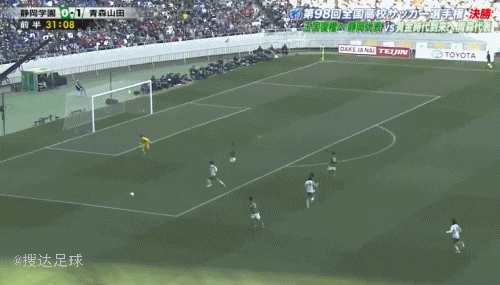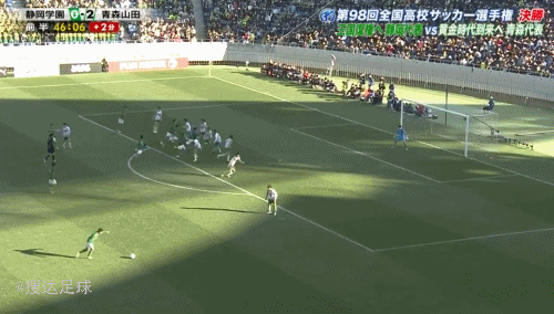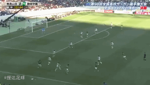 下半场第15分钟,加纳大在禁区线上接球,而后转身抽射破门,静冈学园扳平了比分。