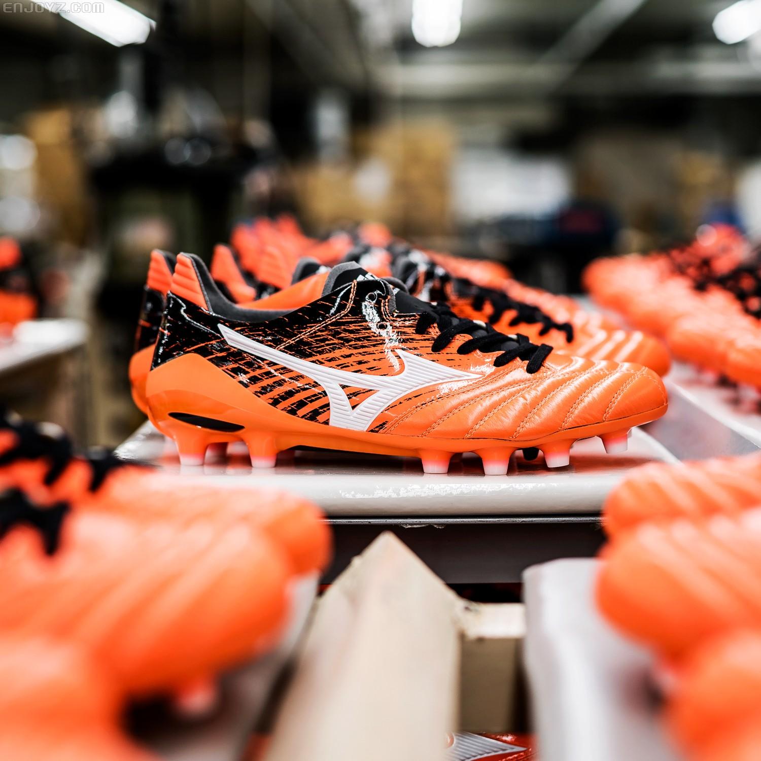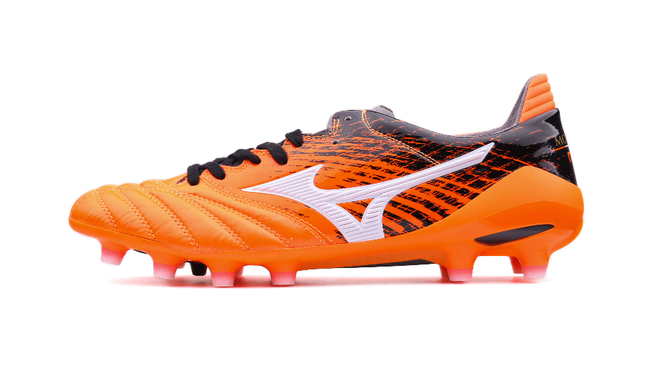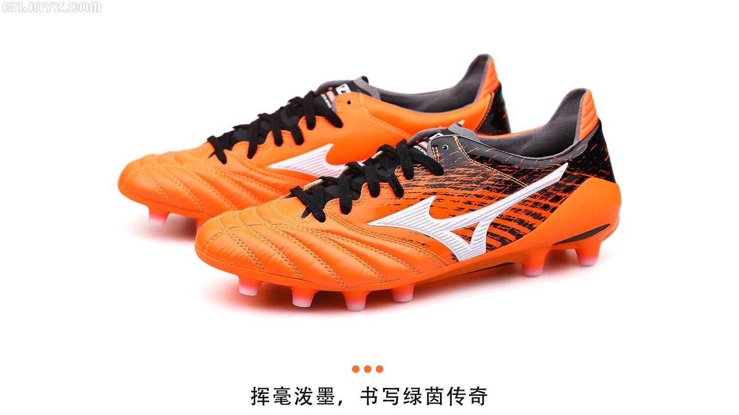 在保留Morelia系列战靴精髓的同时紧跟球鞋轻量化这一潮流,拥有更具现代感和速度感外观的Morelia Neo II显然能够博得不少年轻球鞋玩家的喜爱。醒目的橙色搭配源自日本书法的黑色花纹能让这款战靴多了几分雅致,并且更加日范儿十足。当然,柔软的袋鼠皮鞋面、轻便且抓地表现优秀的尼龙大底,还有“Made In Japan”的品质保证。显然,就像其他日产Morelia系列战靴一样,拥有它你绝对不会后悔。