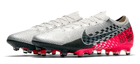 巧妙设计,提升速度,致敬内马尔,Nike Vapor 13 Elite NJR AG-PRO 人造草地足球鞋以第 12 代为蓝本,采用 Flyknit 创新设计。前足增添一个 Nike Aerotrac 区域,稍微提升鞋底硬度,有助增强抓地力。