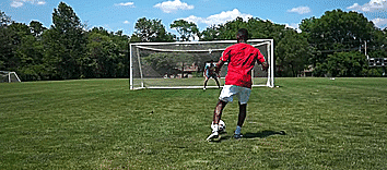 这个假动作有很多不同的变化,当我们背对着球门时,我们也可以从一个方向或者另一个方向做动作,绝对是疯狂的,需要记住的一点是,这个动作必须要逼真,我们自己必须相信我们要从这个假方向突破。
