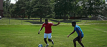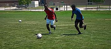 我们在移动,后卫冲过来试图抢球,把球滚出去,想滚多远就滚多远,踢出越远,越能完全转身离开 。