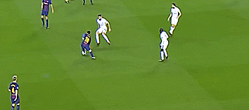 下一个动作是沉肩虚晃,是梅西经常使用的技巧,做假动作的方法是,肩膀下沉,把我们的整个身体甩出去,把整个身体都甩出去之后,用我们的速度向另一个方向冲刺。