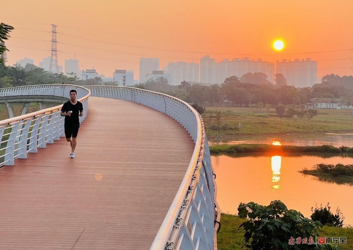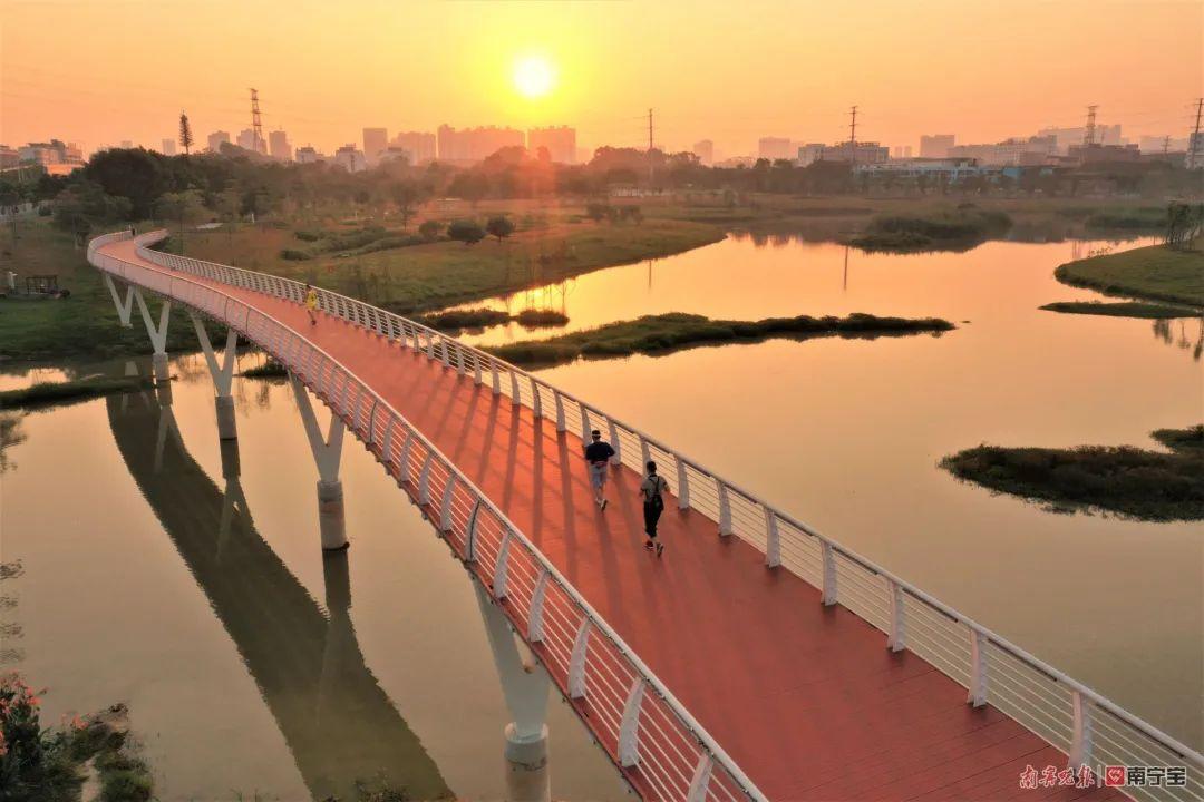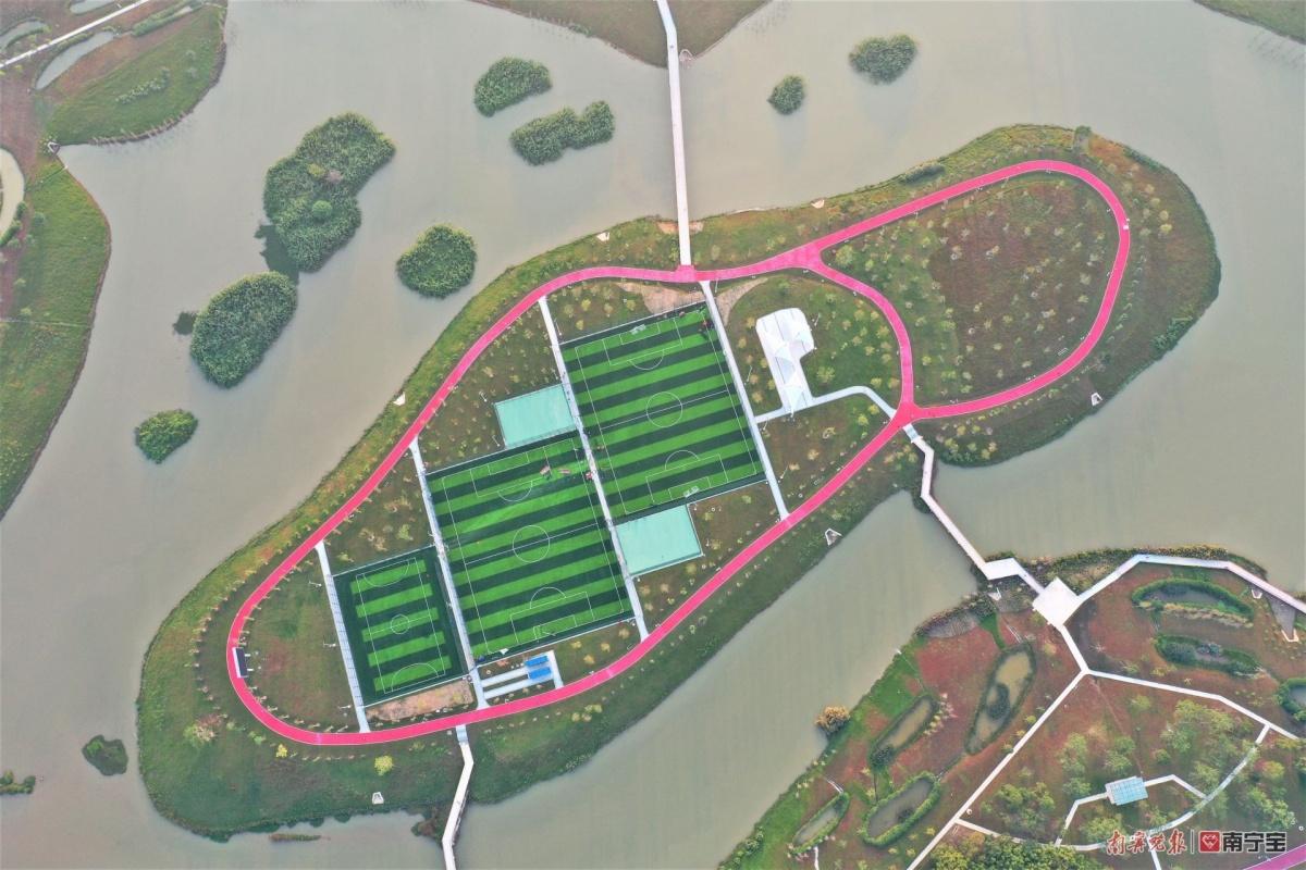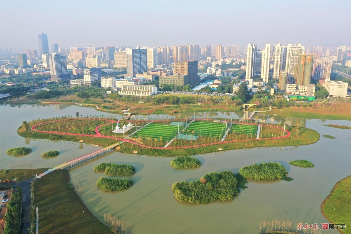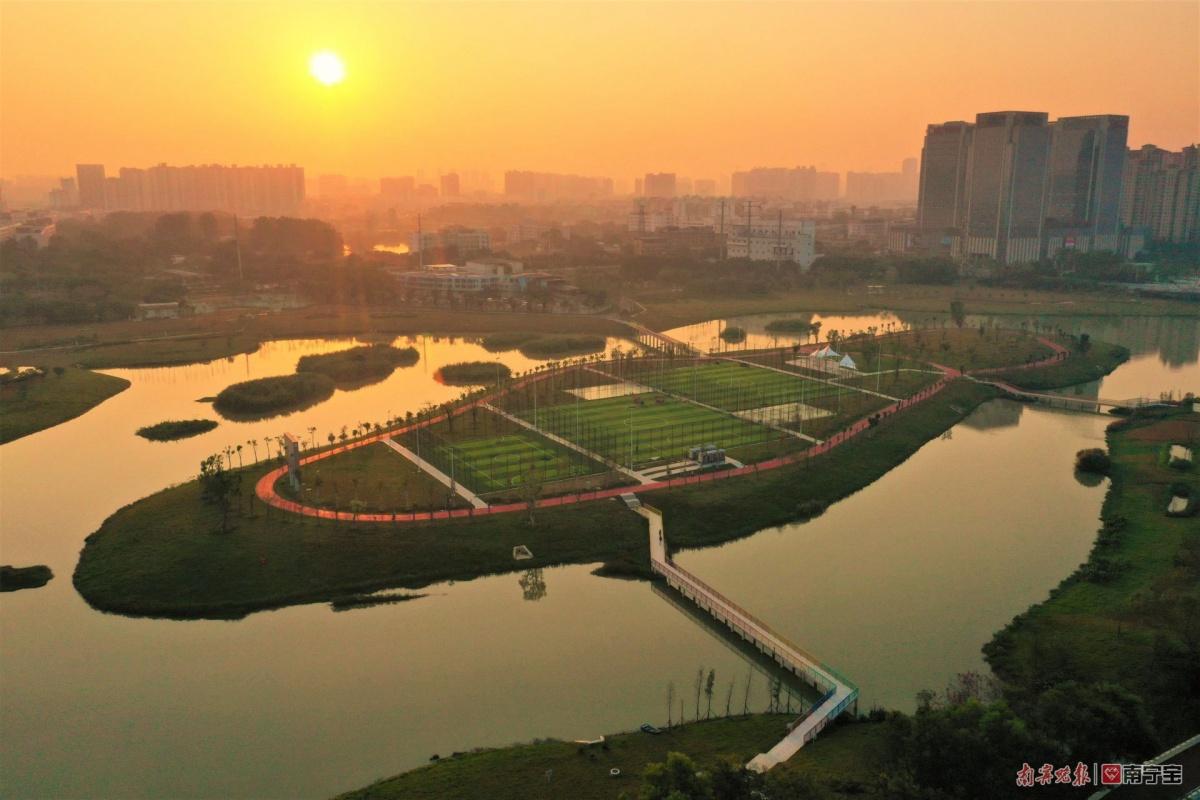 建成后的湖心岛,建有2个“7+1”人制足球场,1个“5+1”人制足球场,2个篮球场,800米环岛道路,市民可到岛上打球、跑步、观鸟等活动,丰富了休闲运动功能和亲水活动场景,提升了明月湖公园生态惠民品质,也为南宁市水环境治理积累和探索新的做法和经验。