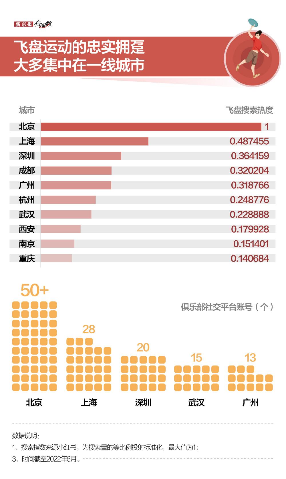 据业内人士介绍,2019年之前,全国飞盘俱乐部才不过50多家,而现在仅北京就有150多家,目前入驻分享平台的俱乐部里北京有至少50家,紧跟其后的上海有近30家。