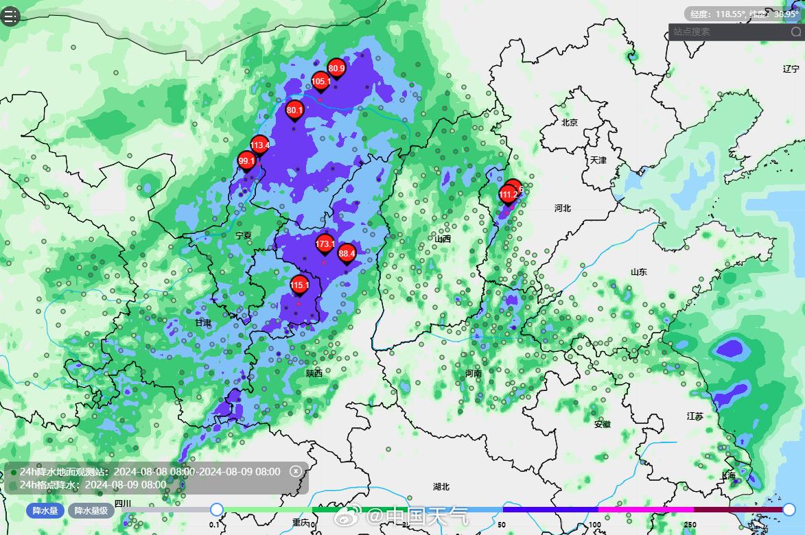 @中国天气 消息,昨天(8日)夜间到今天凌晨,陕西北部的志丹县出现大暴雨,8日22时至9日04时的7小时里出现173.1毫米猛烈降雨,其中凌晨1时和3时均出现50毫米以上猛烈短时强降雨。这场雨也刷新了当地有气象观测以来最大单日雨量纪录。