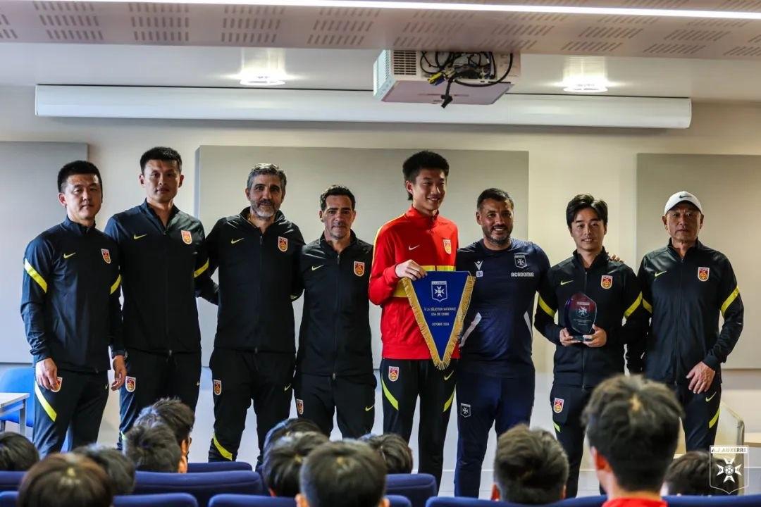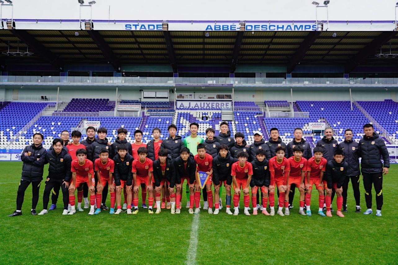 除了在场边观摩,U14国少队还通过4场高水平的交流赛展现了实力,包括以4:0战胜第戎梯队、0:0憾平巴黎圣日耳曼梯队、3:1击败欧塞尔梯队、3:0轻取兰斯梯队。在与欧塞尔U14梯队的比赛中,队员们在欧塞尔主场阿贝-德尚球场上演了精彩的对决,欧塞尔传奇主帅居-伊鲁作为开球嘉宾全程观赛。