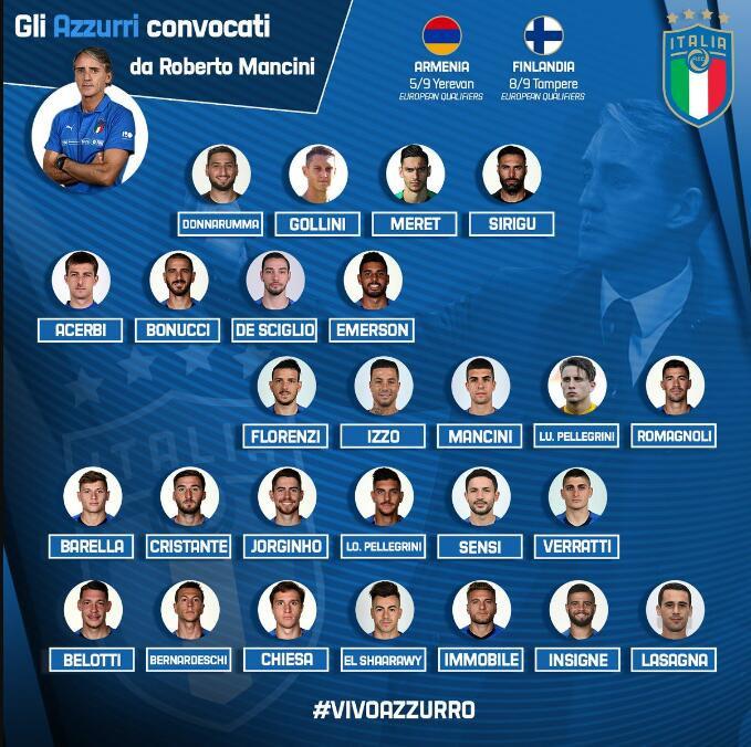 直播吧8月31日讯 意大利国家队官方消息,由于尤文中卫基耶利尼遭遇前十字韧带撕裂的重伤,意大利队官方宣布拉齐奥中卫阿切尔比接替基耶利尼的位置。意大利队将在9月6日和9月9日,分别对阵亚美尼亚队和芬兰队。
