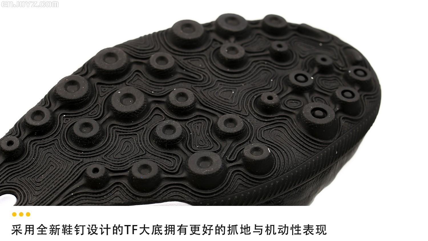 毒锋三的中端TF版,塑胶鞋面的凹凸纹理有助于更好的触球,植入动态飞线可以精确锁定双脚,提供侧向支撑,鞋头与大底采用缝线加固,防止脱胶。鞋款鞋楦尺码正常,TF大底适合偏硬的人草。