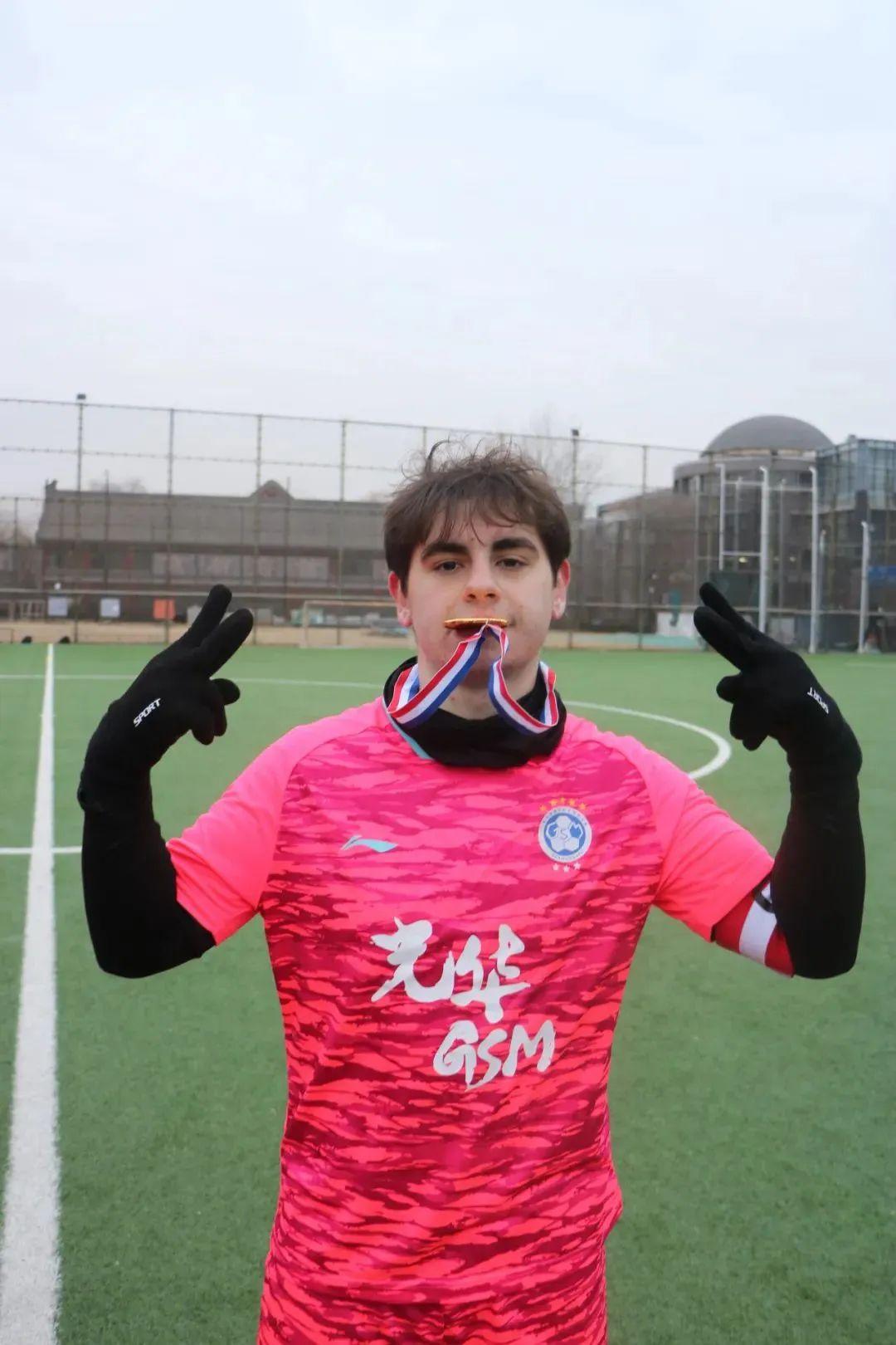作为菜鸟门将,刚开学第一次训练的时候,很不适应那个大球门和同队几位大佬的爆射,每次训完都腰酸腿痛的。但事实证明,和优秀的人在一起自己也会变得优秀,经由队内叶郑刚学长和Nicolas等前辈门将的指导,我自己的各种技术都从混沌状态开始萌芽。