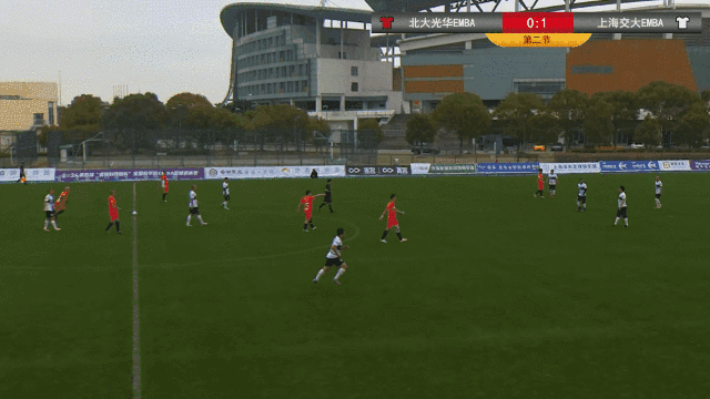 3月30日上午,光华迎来了小组赛次战的对手中欧校友EMBA足球队。光华总结了小组赛首战的问题与经验,调整比赛阵型,全力迎接对手。比赛一开始,双方均攻势猛烈,光华在比赛战至第45分钟时挑射破门取得1:0领先,但中欧不甘落后,于第二节结束前射入一球将比分扳平。但第三节重新开球后,光华队用一记中圈吊射将优势重新追回,比分战至2:1。随后双方越战越酣,中欧通过不断换人试图挽回局面,光华则在稳固防守的同时寻求机会坚决反击。最终,光华凭借韩指的轮转换人和全队的顽强防守最终赢下了这场生死战,小组赛2战1胜1平积4分,以B组第一晋级半决赛。