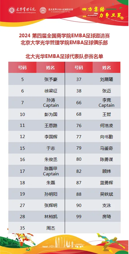 本次赛事北大光华EMBA足球代表队由俱乐部北方、华南、华东三支队伍的主力队员构成,与两支劲旅复旦大学和中欧校友分在B组,根据赛事规则只有小组第一才能晋级四强。