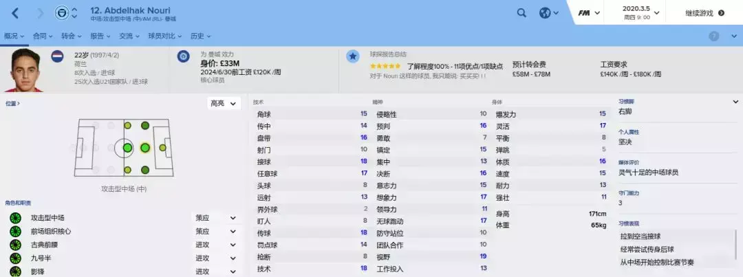 “到了2017-2018赛季,他将会达到世界级水平,届时身价将会达到2000万英镑。因此,在游戏中,你必须尽快打开钱包,毫不犹豫地签下这位称为‘新斯内德’的天才中场。”一位资深FM玩家在论坛里留言。