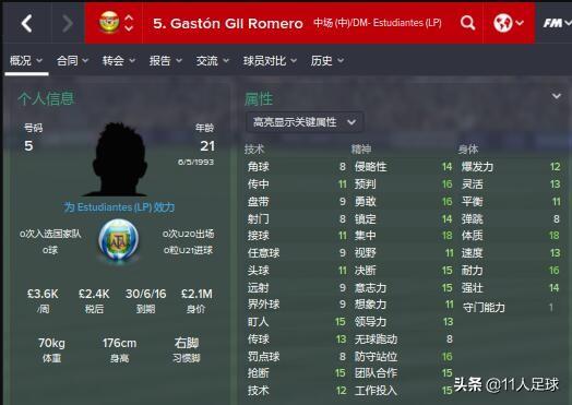 阿根廷后腰罗梅罗的强势,跨越了FM2014、FM2015两个版本,他的潜力PA在175左右,曾被誉为下一个阿图罗·比达尔。