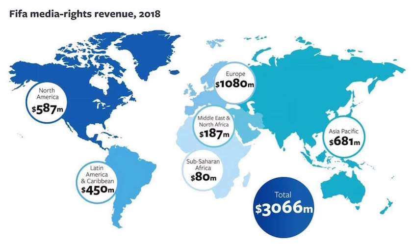 30.66亿美元——FIFA在2015-2018年世界杯周期内获得的媒体版权收入。下一个四年周期将达到35亿美元。