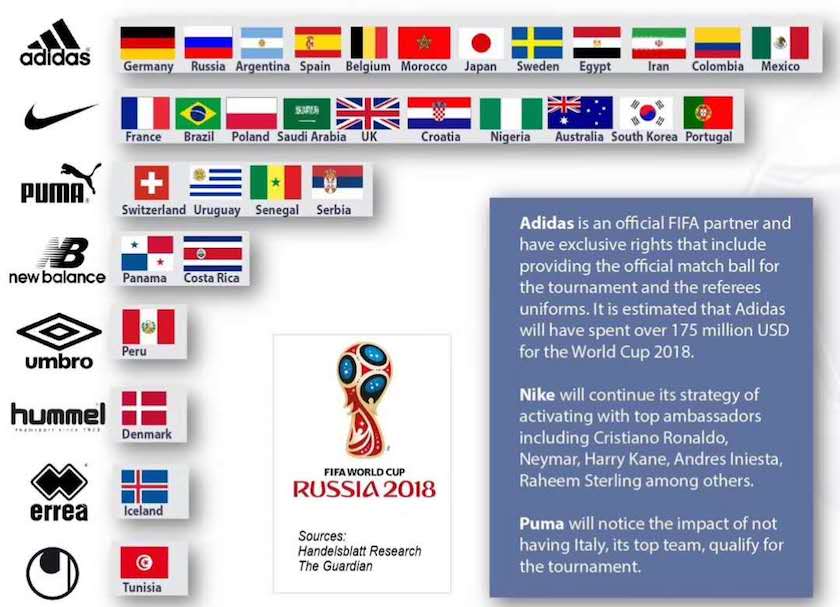 阿迪达斯是FIFA的官方合作伙伴,也享有包括提供比赛官方用球以及裁判制服等权益。据估计,阿迪达斯为2018年俄罗斯世界杯投入了超过1.75亿美元。