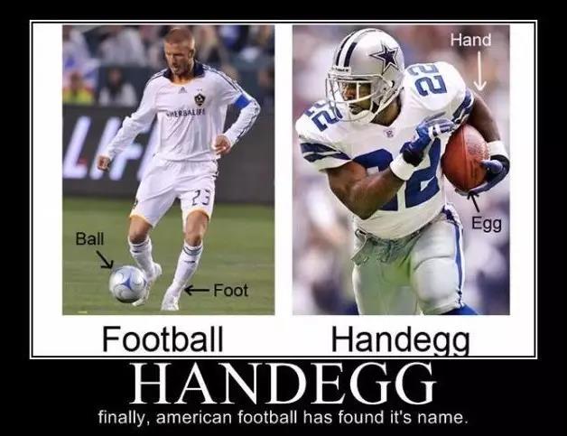 但美国人就比较奇怪了,明明是用手扔来扔去的橄榄球他们叫football,而真正用脚踢的足球他们叫soccer。这是为什么?