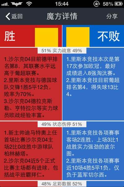 足球魔方APP界面,显示对战两队的情况。