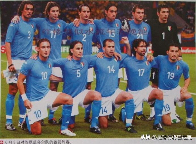 2006年7月9日世界杯决赛,首发11人为:布冯、马特拉齐、托尼、格罗索、托蒂、加图索、皮尔洛、卡莫拉内西、卡纳瓦罗、赞布罗塔和佩罗塔。此时的蓝衣军团可能不如之前四次世界杯强大,但皮尔洛与加图索组成的后腰组合,以及多位球员关键时刻的爆发,加上那么一点点运气让意大利笑到最后。120分钟战成1比1后,意大利在点球大战中战胜法国,第四次荣膺世界杯冠军。