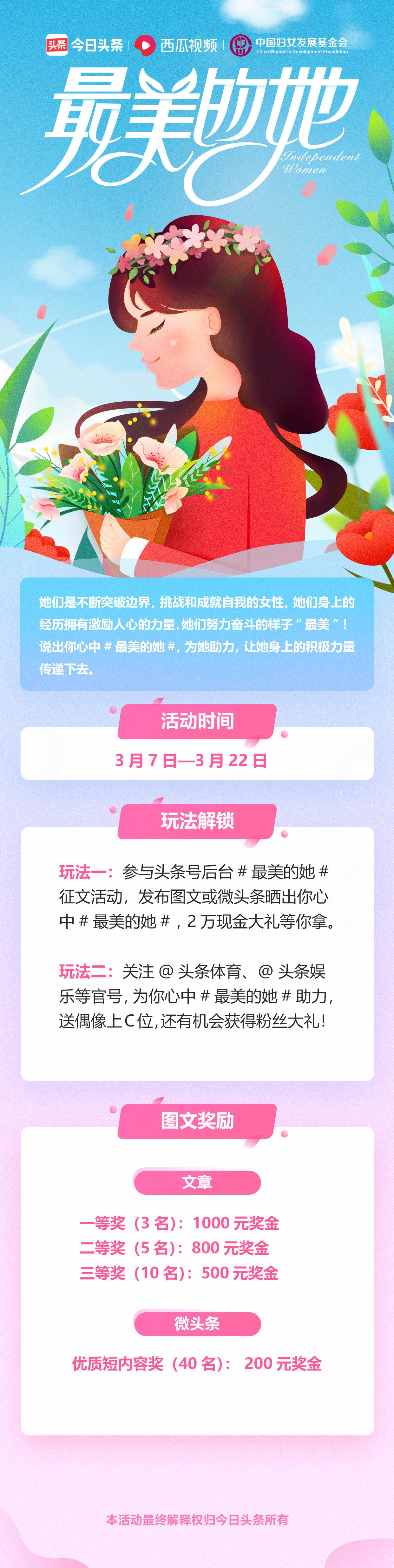 3)参与#最美的她#话题活动,就有机会赢取2万元现金大奖 ,参与地址戳我!