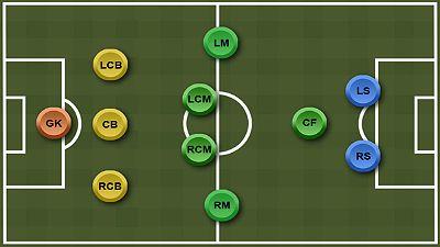 一般而言,4-4-2蝶形中场阵型是世界强队的首选阵型,此套阵型依托球员强大的个人能力来支配场上的球权,控制场上的局面。4-4-2碟形中场对中场的4名球员的要求更是达到了极致,能传能带,良好的视野与空间感,进攻与防守的全面性都要在实战中有所体现。 比如2014年以前的巴西国家队就长期采用4-4-2蝶形中场阵型。另外,中超球队北京国安也曾在施密特执教时期使用过4-4-2蝶形中场阵型,并留给球迷们极深的印象(如上图所示)。